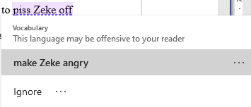 After a longer than intended break I’ve gotten back into the writing habit and made some progress on the second draft of my next book, The Gray Shift. I also discovered some interesting things about Word 365’s views on profanity.